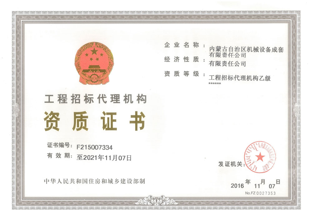 內蒙古自治區機械設備成套有限責任公司營業執(zhí)照
